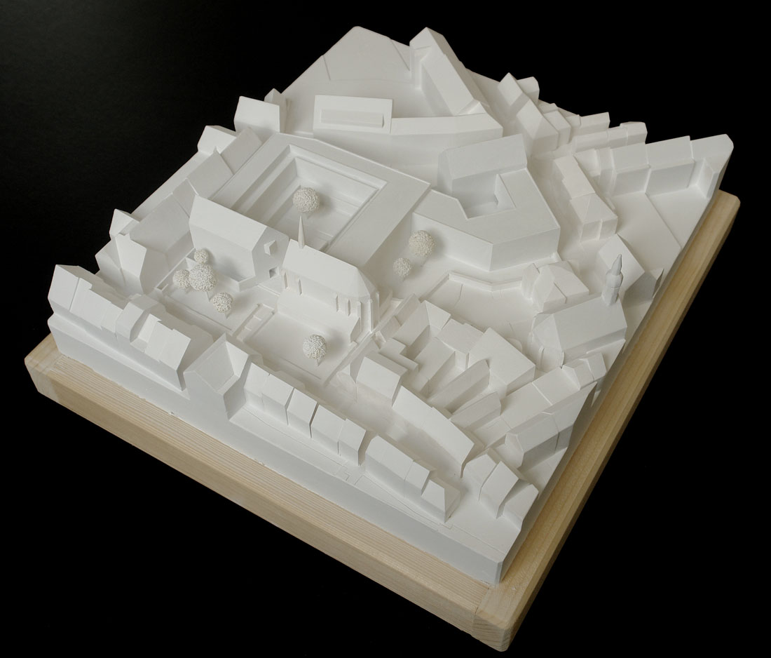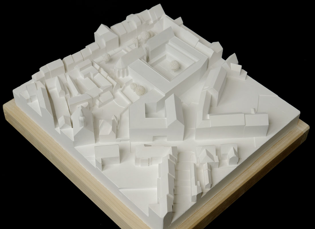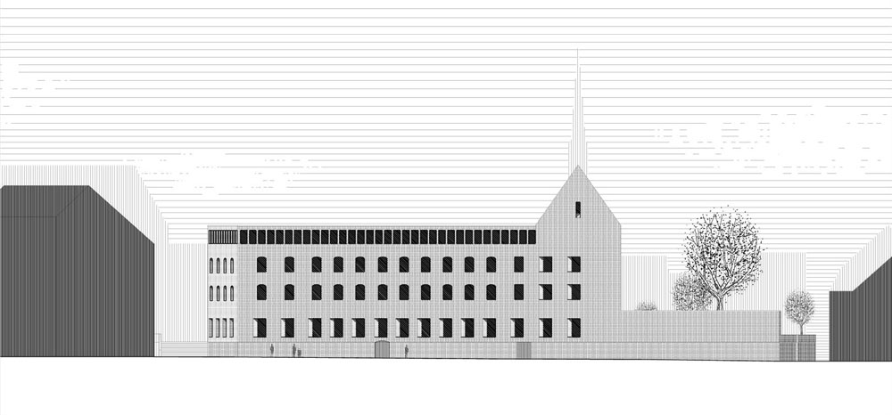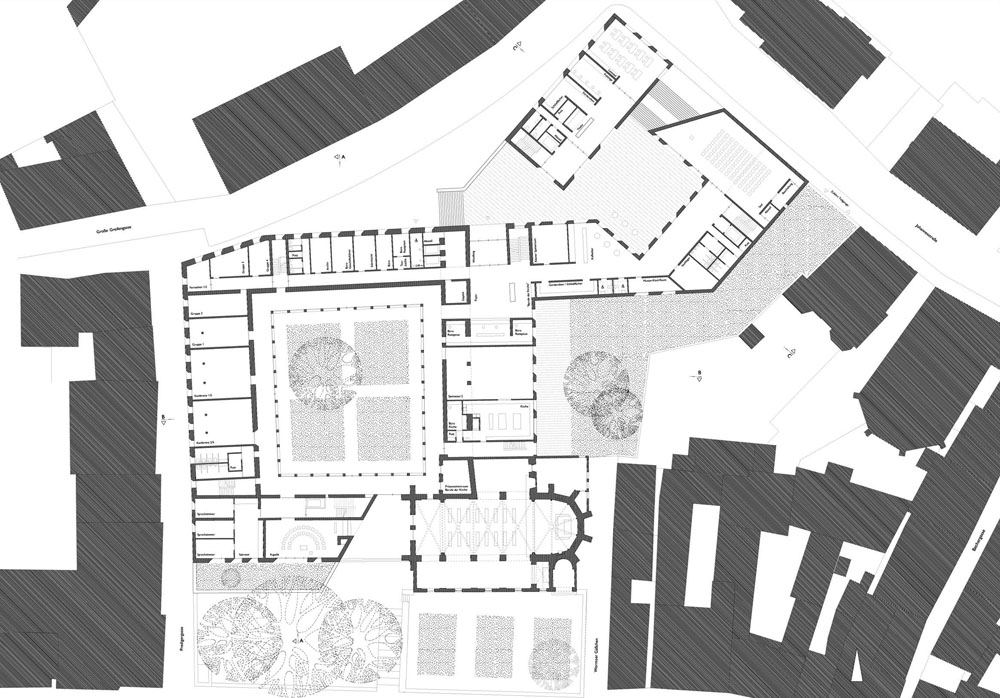 Das Bistumshaus der Diözese Speyer sollte im Rahmen eines Wettbewerbs in ein zentrales Tagungshaus mit Bibliothek und Priesterseminar umgewandelt werden. Die Kirche aus dem Jahr 1308 war zu integrieren. Der Bestand ist immer wieder weitergebaut worden. Ein Rückbau in Teilen war möglich. Es wird vorgeschlagen, den ehemaligen Klosterhof mit dem Kreuzgang als zentralem Erschließungselement wieder erfahrbar zu machen.