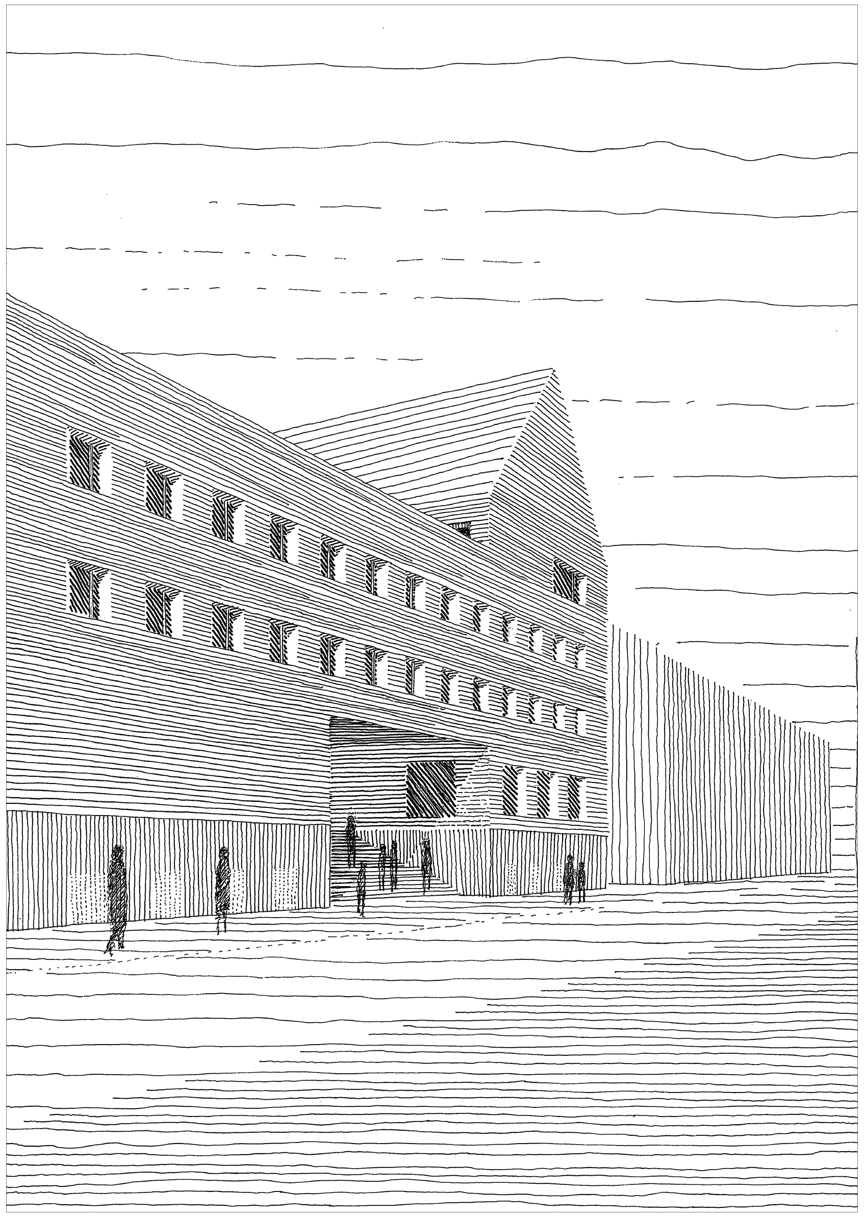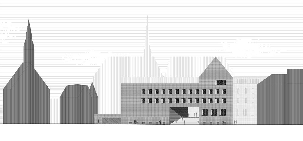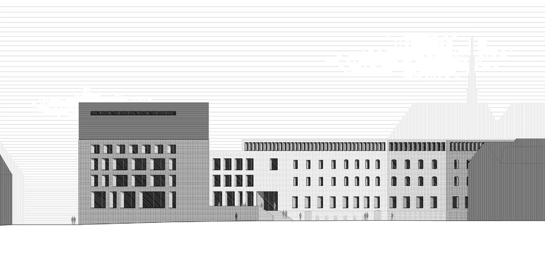Die ursprüngliche Kubatur der Kirche wird in der Verlängerung durch ein ergänztes Seminargebäude erlebbar und somit das stadträumliche Bild der ursprünglichen Anlage wieder hergestellt. Dem abgeschlossenen Innenhof wird ein zweiter, um 45 Grad gedrehter, öffentlicher Eingangshof gegenübergestellt, der in den Stadtraum geöffnet und eingebunden ist. Durch die beiden Höfe wird die Gesamtanlage sinnfällig geordnet und strukturiert. Öffentlichkeit und Privatheit sowie Ruhe und Kontemplation als auch Versammlung und Kommunikation erhalten ihre prägnanten Orte in der Gesamtanlage des Bistumshauses. Die neuen Ergänzungen nehmen mit ihren Fassaden Bezug auf die klassischen Lochfassaden des Bestandes. Das Bild der historischen Innenstadt von Speyer wird mit dem Bistumshaus weitergeführt.
