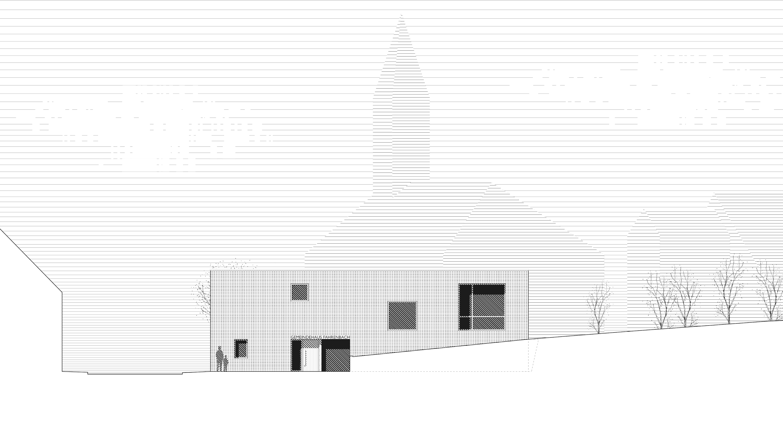 Der Neubau des Gemeindehauses soll von der evangelischen und der katholischen Kirchengemeinde, beide in Fahrenbach, gemeinsam genutzt werden. Die benachbarte evangelische Kirche wurde 1826 im Stil von Friedrich Weinbrenner erbaut. Während sie unmittelbar südlich an das Baufeld anschließt, befindet die katholische Kirche sich auf der anderen Seite, nördlich vom Baufeld, etwa hundert Meter entfernt.