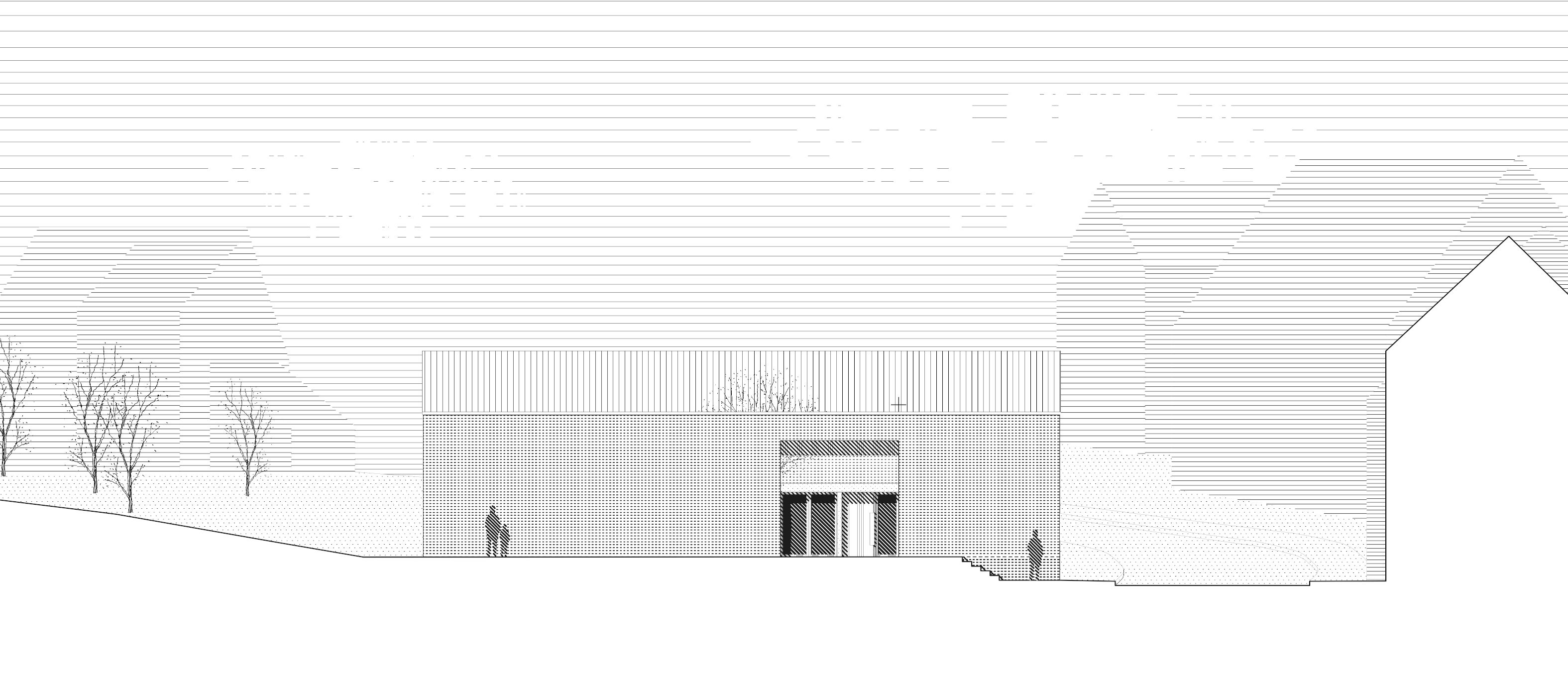 Der Entwurf sieht vor, die beiden Lagen der Kirchengebäude im neuen ökumenischen Gemeindehaus durch zwei Eingänge zu thematisieren und räumlich erfahrbar zu machen. In einem gemeinsamen Innenhof treffen sich die Zuwege: Von Süden gibt es einen offenen Eingang in den Hof, während von Norden der Zugang in das Gebäude erfolgt. Angehörige beider Konfessionen können, jeweils von ihrer Kirche kommend, das Gemeindehaus unmittelbar betreten. Der Aspekt der Begegenung in der offenen Mitte wird räumlich thematisiert.