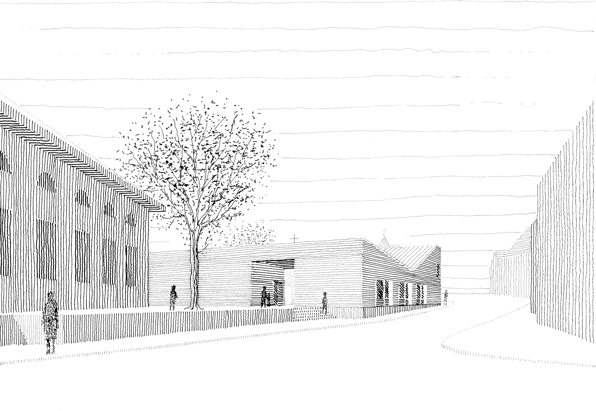 Öffnung und Schutz, Gemeinschaft und Kontemplation, Feier und Alltag sind die Qualitäten der vorgeschlagenen Innen- und Außenräume für ein lebendiges Miteinander der beiden Kirchengemeinden.
